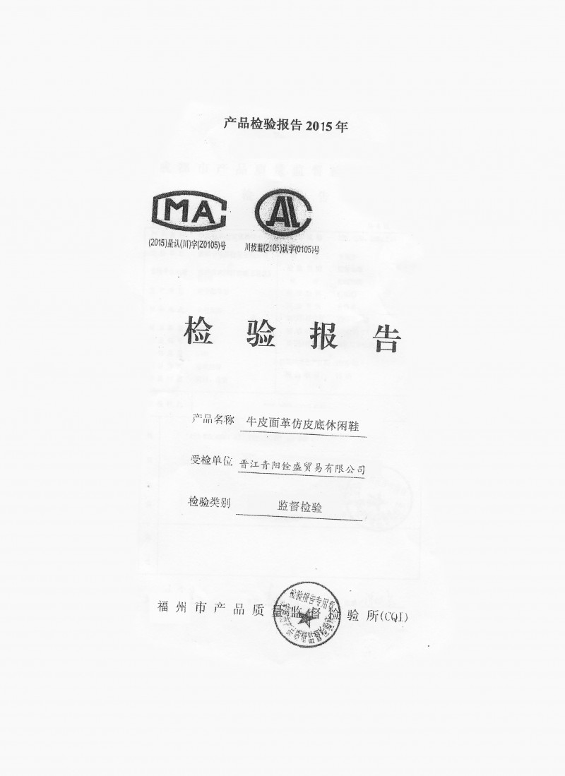 晋江铨盛产品认证证书