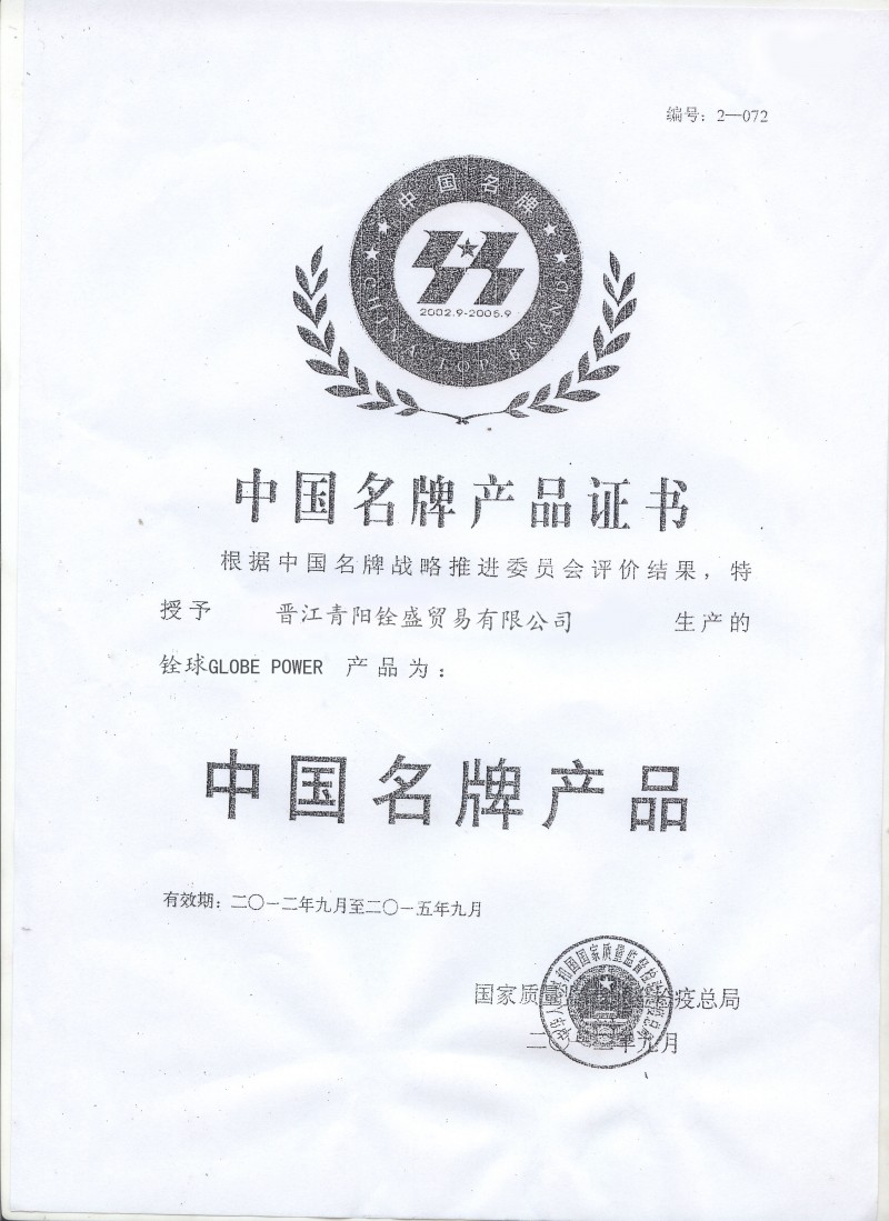 晋江铨盛产品认证证书