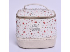 日系布艺棉麻收纳拼接水玉点点 小碎花手提化妆箱 化妆包