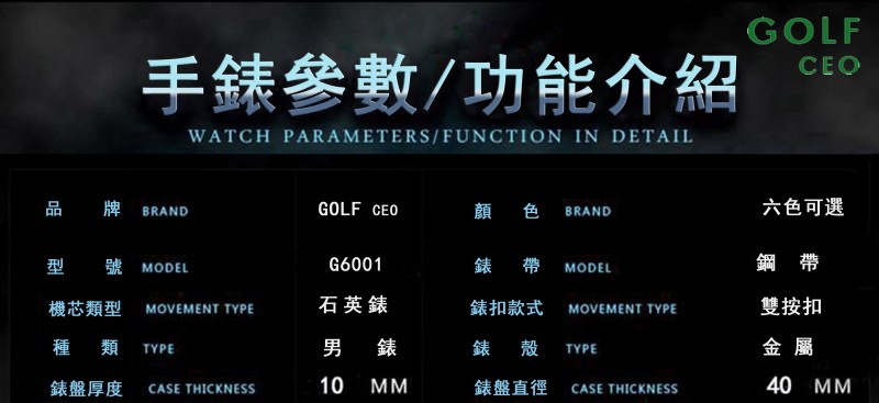 GOLF CEO高爾夫總裁 G6001男士石英錶