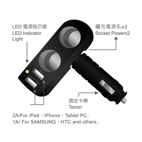 車用兩孔擴充+3A兩孔USB充電器 E-PCB054