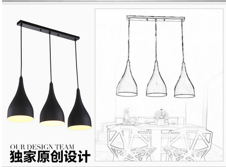 » 简约创意酒杯铝材餐吊灯现代餐厅吧台过道锥形喇叭个性三头吊灯