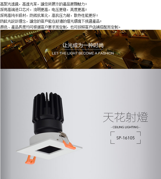 » led射灯 cob方形孔天花灯 客厅酒店博物馆展厅天花射灯
