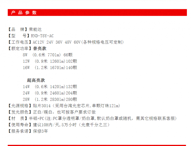 » 一体t8 12V 24v 36V 48V工地安全 LED灯管