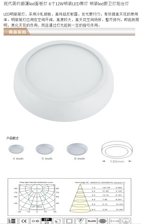 » 佳尼士压铸超薄led面板灯6寸12W明装LED筒灯明装