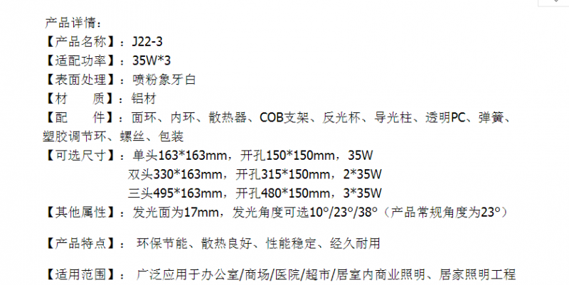 » 佳尼士 新款三头COB格栅灯外壳 35W三头天花射灯套件