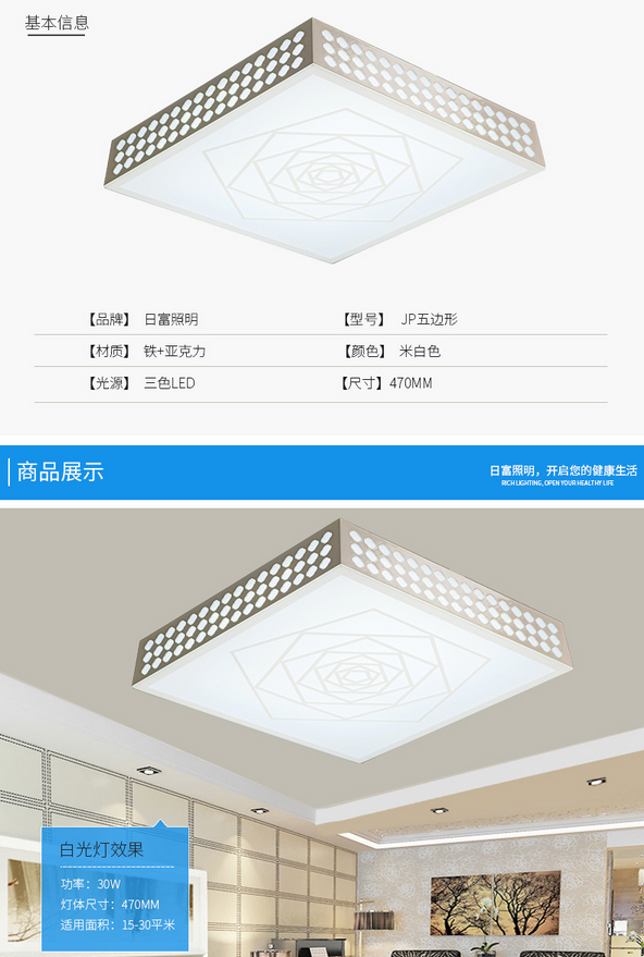 » 五边形LED吸顶灯 海量货源 三色可调中式现代方形吸顶灯