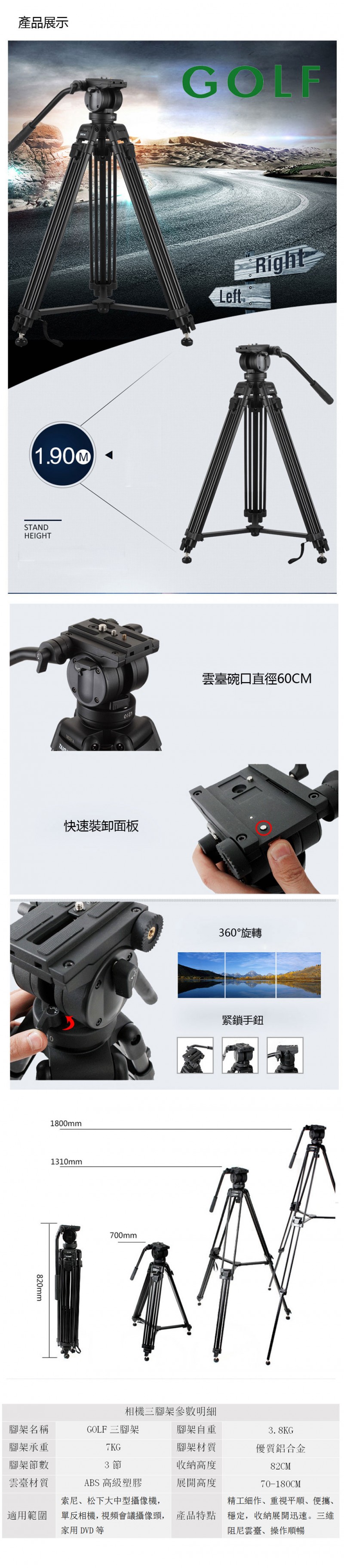 GOLF高爾夫 G3462相机用三脚架