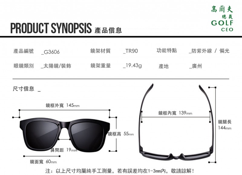 » GOLF CEO高爾夫總裁 G3606偏光太陽眼鏡 男款