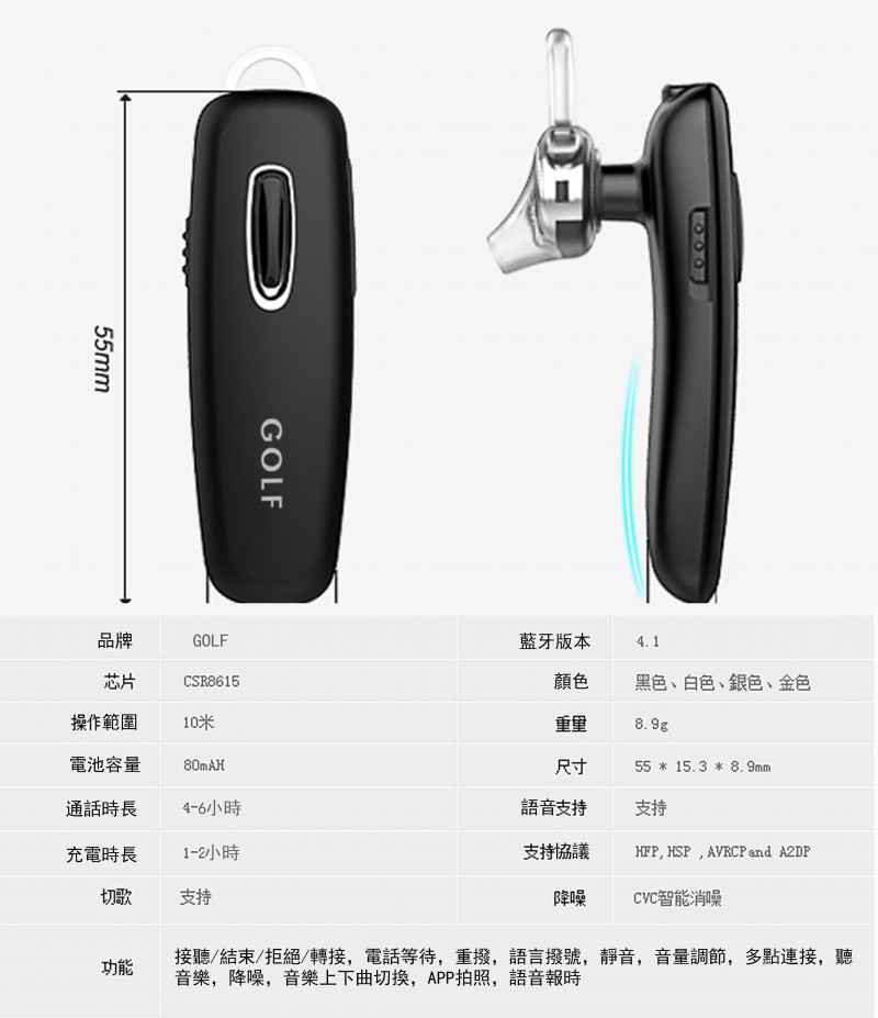 » GOLF 高爾夫 挂耳式无线蓝牙耳机G3312
