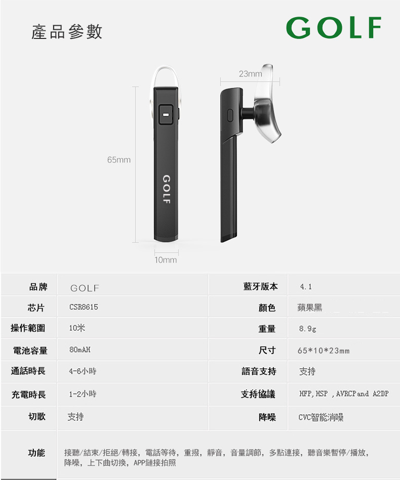 » GOLF 高爾夫 挂耳式无线蓝牙耳机G3313