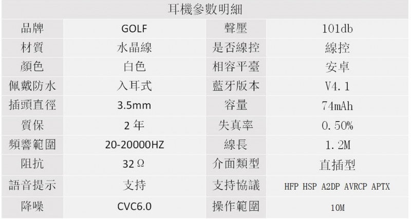 » GOLF 高爾夫 入耳式蓝牙耳机G3307