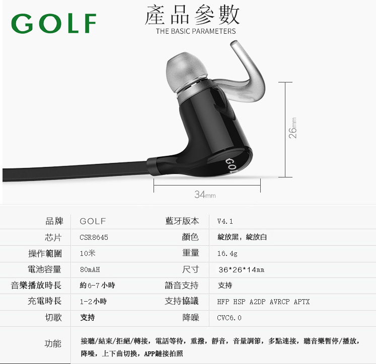 » GOLF 高爾夫 入耳式蓝牙耳机G3308