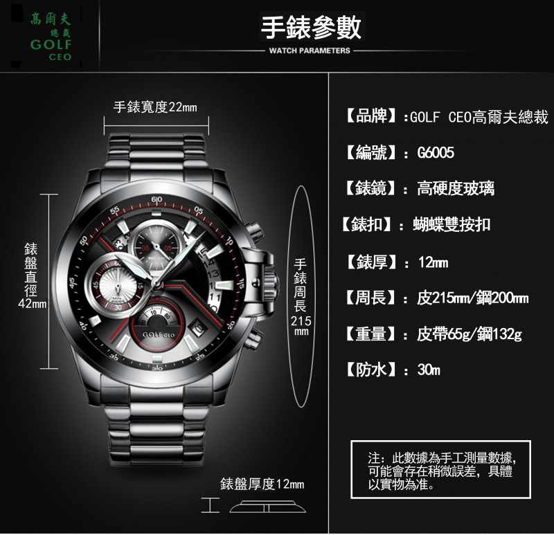 GOLF CEO高爾夫總裁 G6005机械手表