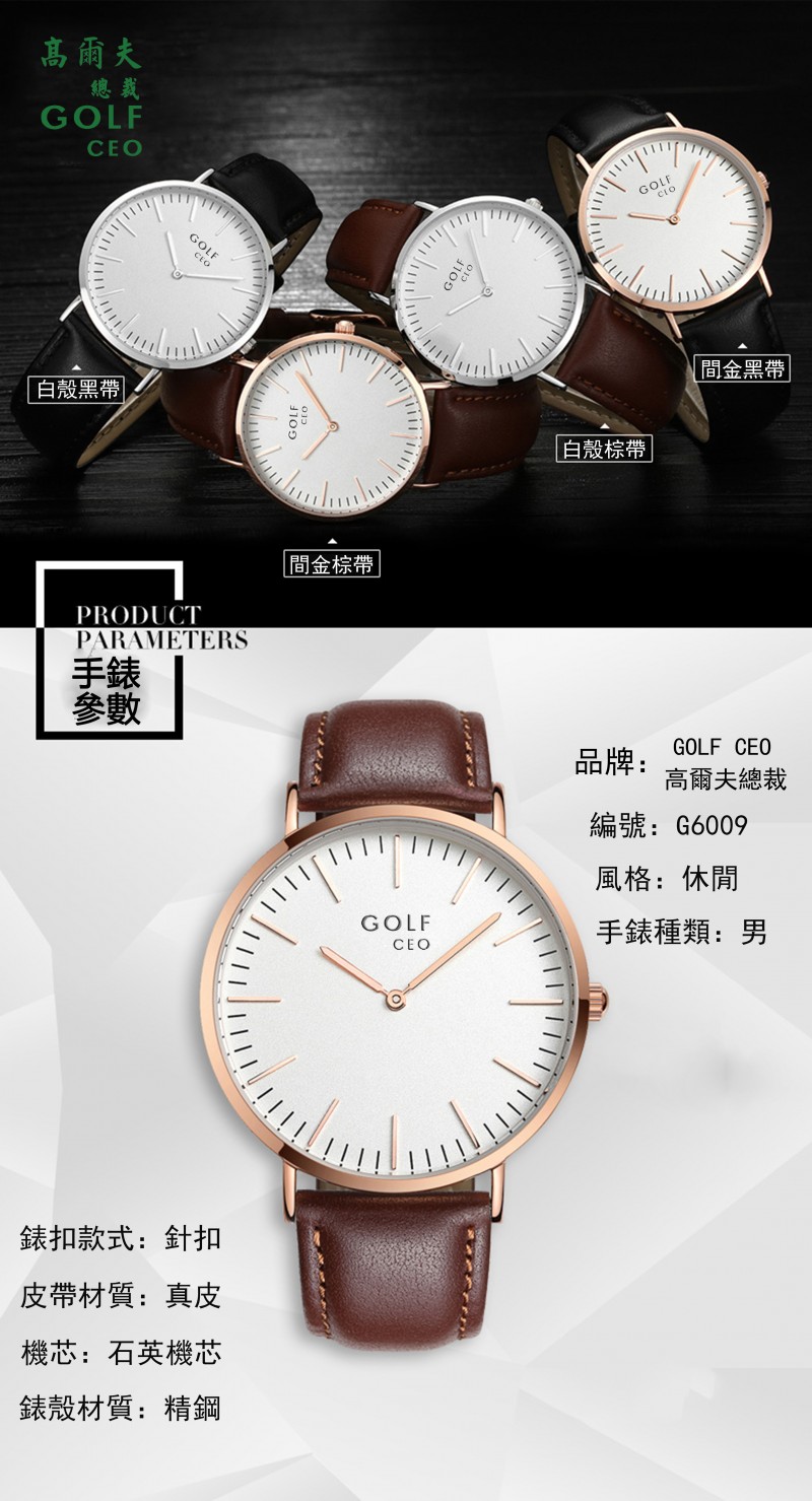 GOLF CEO高爾夫總裁 G6009男士石英表