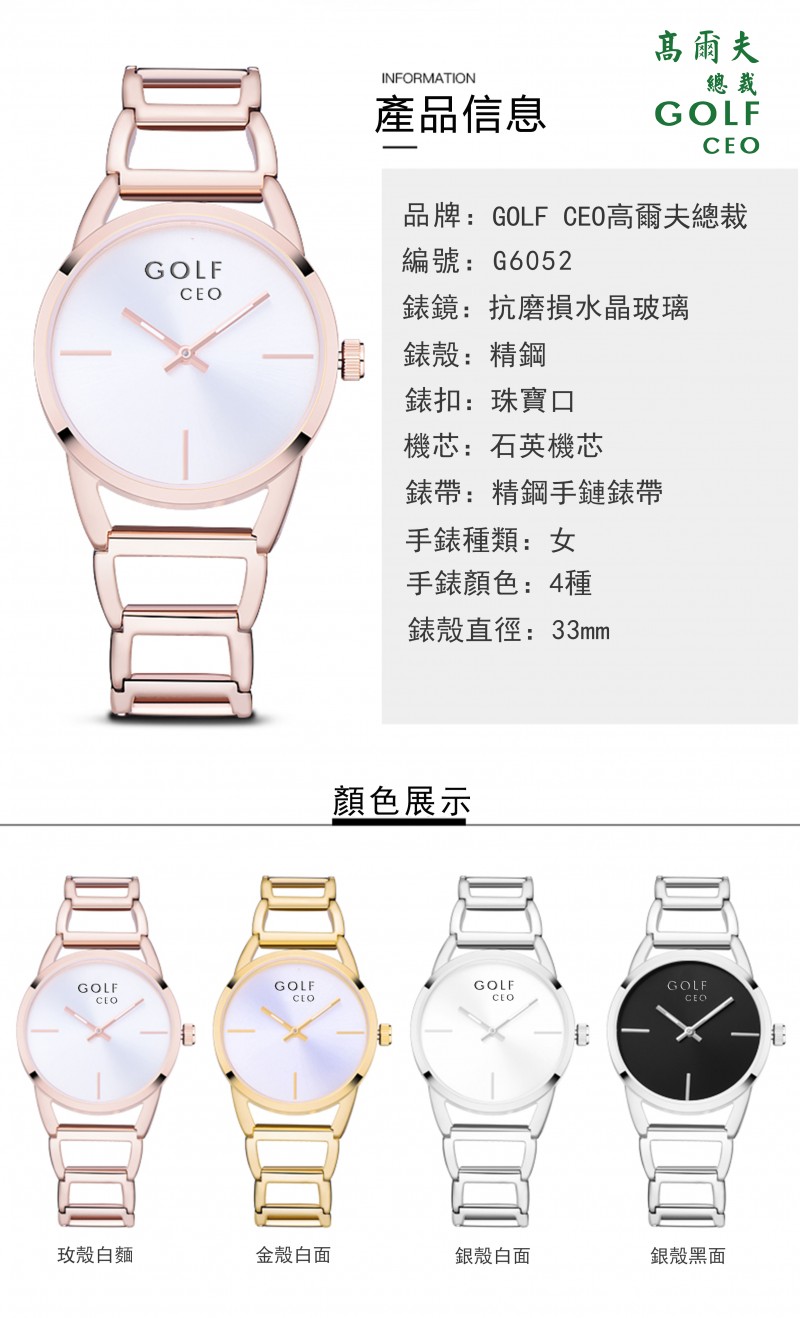 » GOLF CEO高爾夫總裁 G6052女士石英表