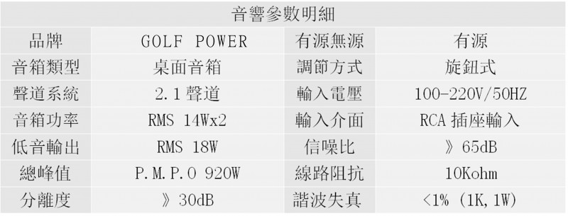» GOLF POWER 音箱低音炮G3382