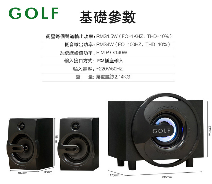» GOLF高爾夫 电脑音响台式多媒体低音炮重低音G3381