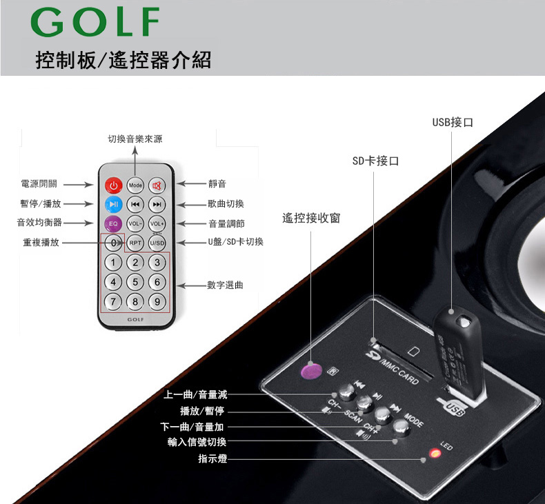 » GOLF高爾夫 木质 多媒体小音响重低音G3390