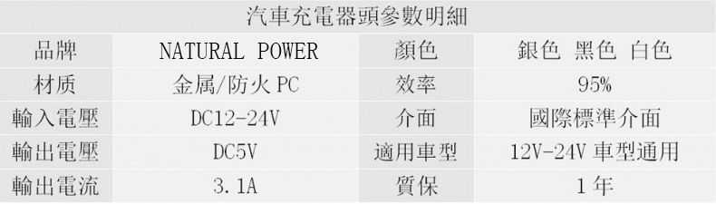NATURAL POWER NP23401汽車充電器