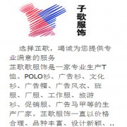 选择芷歌,竭诚为您提供专业满意的服务 芷歌歌服饰是一家专业生产T恤、POLO衫、广告衫、文化衫、广告帽、广告风衣、班服、厂服、工作服、旅游衫、促销服、广告马甲等的生产厂家。芷歌服饰一直以价格合理、品种丰富、设计新颖、服务周到、交货快速、等优异的品质征受广大消费者的青睐。团美服饰以质量铸就生命,以诚信赢得市场,秉承“诚信、创新、协作、服务”。公司集设计、生产、销售、服务为一体,具备多年丰富的服装生产经验,生产设备齐全,设有服装设计板房,印花厂,生产车间,尾部质检组。且我司一直力求在打版、样衣、缝纫、绣花、印花、整烫包装等各制作环节严格把关。产品种类众多,业务涉及领域广。不仅为客户提供高质量的产品,而且为客户提供高效的服务,帮助客户省钱,省时,省力。公司以客户的实际需求出发,定制化设计方案,满足各类客户的智能化需求提供完美解决方案。 [详细介绍] |