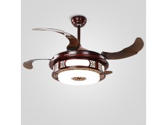 普省中式餐厅LED隐形风扇灯吊扇灯客厅书房卧室古典木艺吊扇灯