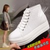 2016春夏韩版休闲鞋单鞋系带高帮小白鞋厚底松糕鞋洞洞网鞋女真皮