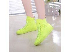夏季新款糖果色弹力布鞋韩版平底高帮系带休闲鞋女鞋马丁靴子