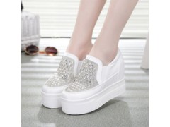 2016春季新款韩版内增高厚底网纱透气运动鞋套脚松糕单鞋女乐福鞋