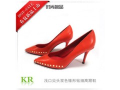 热销爆款浅口双色锥形钻时尚女鞋高跟鞋 纯色套脚尖头女单鞋批发