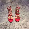 欧洲站2016夏季真皮铆钉高帮中跟凉鞋女皮带扣组合宝石粗跟女鞋潮