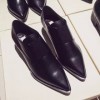 欧洲站2016新款尖头皮筋鞋中性风百搭休闲平底低跟女单鞋黑色皮鞋