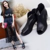 2016新款夏季凉鞋女士真皮鱼嘴鞋欧美粗跟高跟网纱凉鞋镂空凉靴子