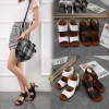 2016夏季新款女鞋欧美简约显瘦金属粗跟高跟露趾罗马风真皮凉鞋子