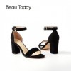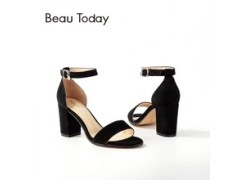 2016新款欧美风真皮纯色粗跟女凉鞋一字扣带女高跟鞋