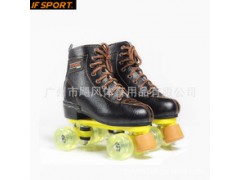 双排溜冰鞋批发低价批发黑色压花皮溜冰场专用特耐用双排溜冰鞋