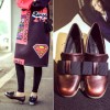 2016新品春鞋欧美大牌复古英伦方头蝴蝶结女式单鞋115-1