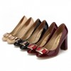 韩百蒂浅口漆皮高跟单鞋女 粗跟方头真皮低帮女鞋裸色职业工作鞋