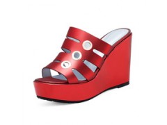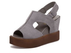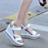 欧美女鞋新款真皮夏季凉鞋 防水台时尚坡跟圆头松糕牛皮鞋女
