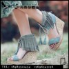 2016新款批发 真皮凉鞋 供应流苏坡跟凉鞋 高跟鱼嘴凉鞋民簇风
