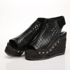 2016夏新款鱼嘴真皮镂空麻绳草编凉鞋后空坡跟松糕凉靴