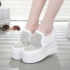 2016春款坡跟单鞋水钻厚底松糕鞋女 内增高女鞋平底单鞋春季女鞋