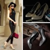 2016秋季韩版羊皮压花蛇纹贴膜水钻高跟尖头浅口大小码女单鞋