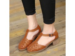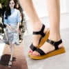 网红爆款 上新夏季新款欧美真皮中跟学生鱼嘴厚底松糕罗马凉鞋女