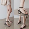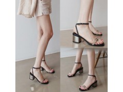 爱米兰2016春夏粗跟凉鞋女真皮一字带简约女鞋