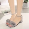 2016夏季新款粗跟凉鞋女甜美花朵鱼嘴凉鞋时尚中跟凉鞋批发可代发
