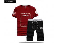 男士新款夏装运动休闲T恤短袖套装 时尚青年修身短袖t恤男士套装