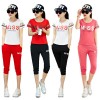 2016夏装新款口红印花休闲运动套装 七分裤修身显瘦大码女装