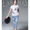 时尚套装女2016夏季新款 蜻蜓刺绣T恤+7分牛仔裤两件套 18425