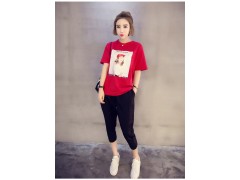 2016大码女装 T恤哈伦七分裤 运动休闲套装潮